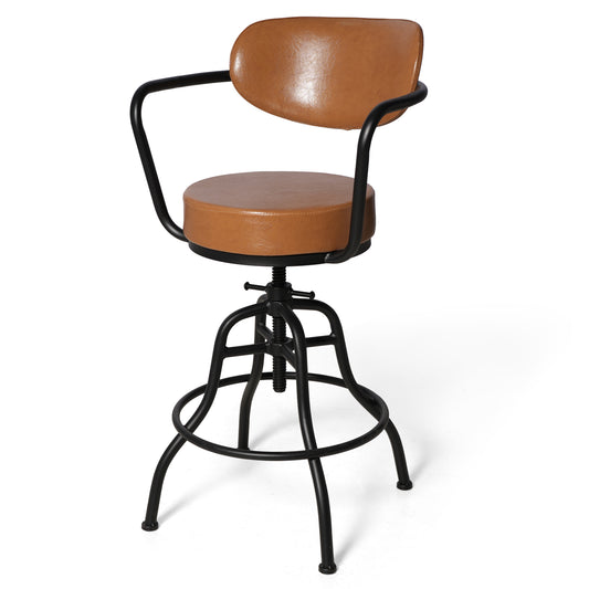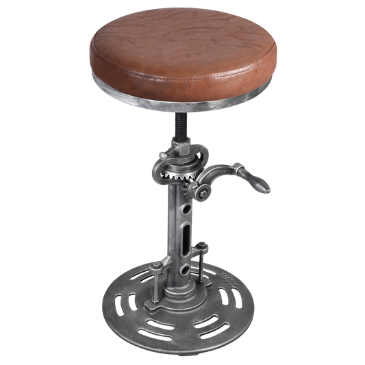 American Antique Industrial DIY Crank Stool Cast Iron Base Bar Stool Design Metal Adjustable Height Bar Chair (PU Leather Top)