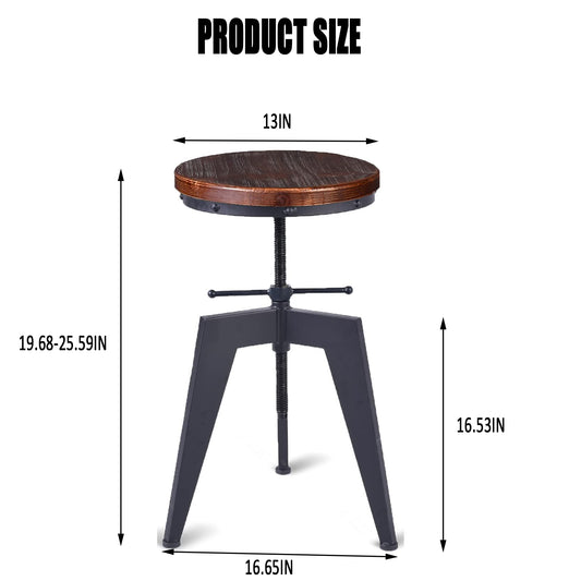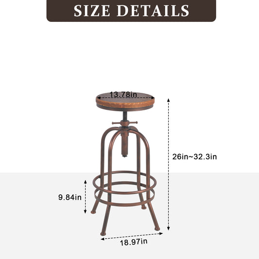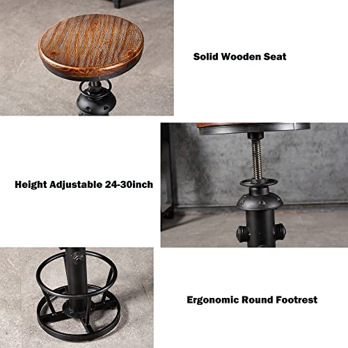 Industrial Bar Stools Kitchen Island Dining Chairs Swivel Wooden Seat Bar Counter Height Adjustable 25-31inch