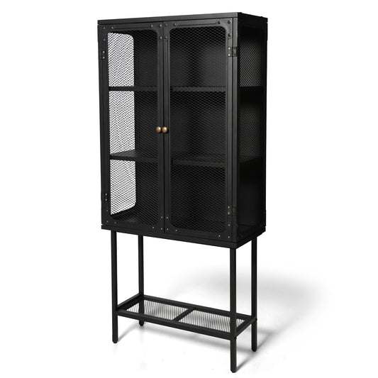 Industrial style storage cabinet home kitchen storage cabinet against the wall retro tin cabinet living room iron dining cabinet(Black)