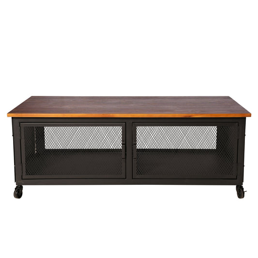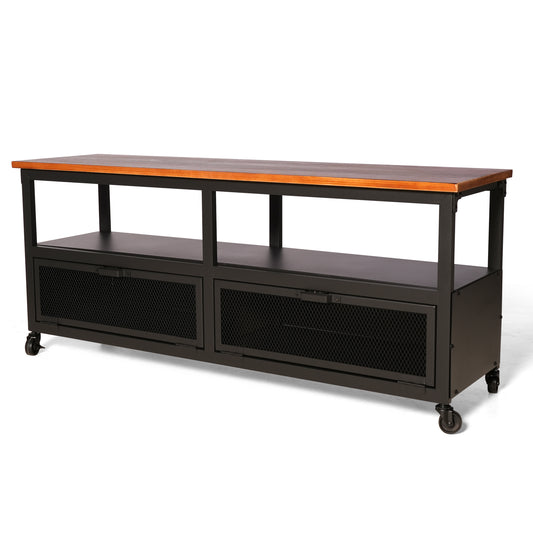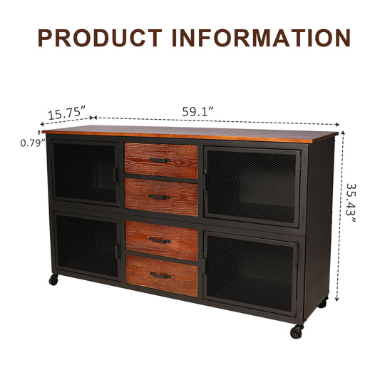 Industrial style storage cabinet with wheels home kitchen storage cabinet against the wall retro tin cabinet living room iron dining cabinet(Black& Wood Top)