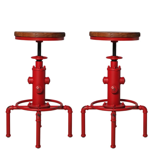 American Antique Vintage Industrial Barstool Solid Wood Water Pipe Fire Hydrant Design Cafe Coffee Industrial Bar Stool Set of 2