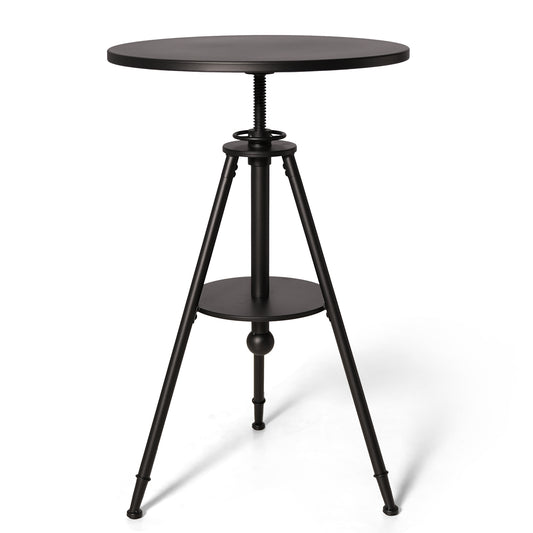 Industrial Bistro Table Vintage Cafe Table Farmhouse Round Dining Table for Kitchen Rustic Side Table Swivel Metal Top 32.28-39.37inch Height Adjustable