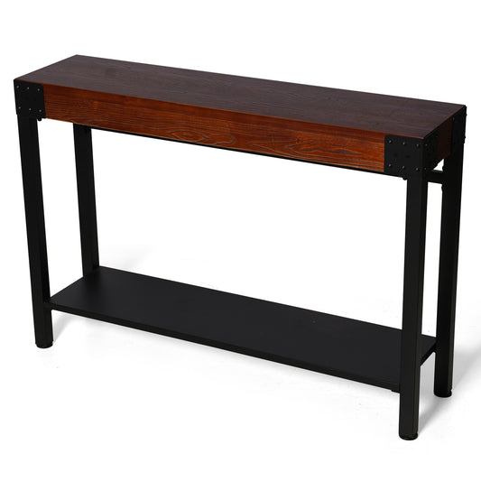 Console Table 47.24”, 2-Tier Industrial Entryway Table, Narrow Entrance Sofa Table with Shelves, Hallway, Living Room, Foyer, Corridor, Office, Rustic Brown and Black