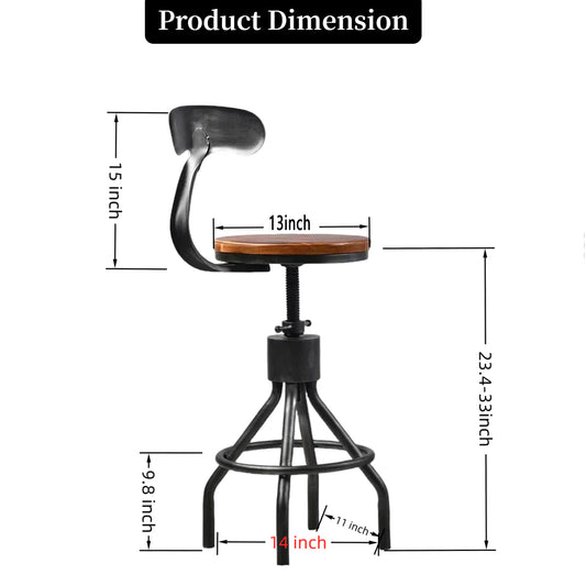 Set of 2,Industrial Bar Stools with Backrest-Swivel Wood Seat-Bar Counter Height Adjustable 26-32.3inch-Kitchen Island Dining Chair