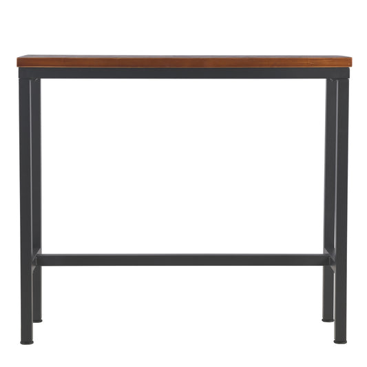 Bar Table, 45.3"L×41.34"H Bar Height Pub Table High Top Rectangular Sofa Console Table Kitchen Dining Coffee Table, for Narrow Space, Living Room, Indoor, Industrial Black Metal, Rustic Brown Wood