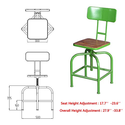 Home Kitchen Stool, Industrial Counter Stool,Square Wooden Seat Height Adjustable Swivel Bar Stools Indoor House Design with Backrest Green
