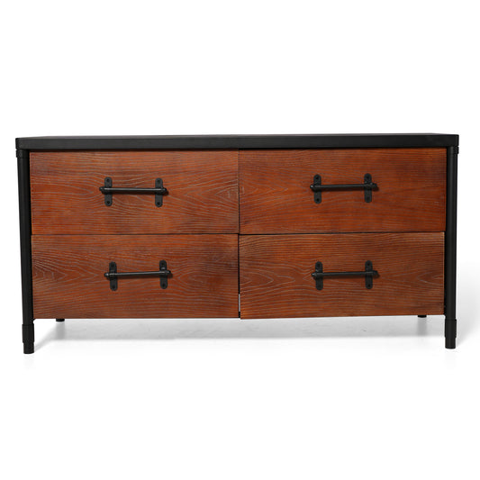 Industrial style storage cabinet home kitchen storage cabinet against the wall retro tin cabinet living room iron dining cabinet(Black/Brown)
