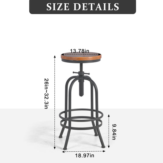 Industrial Bar Stools Kitchen Island Dining Chairs Swivel Wooden Seat Bar Counter Height Adjustable 25-31inch