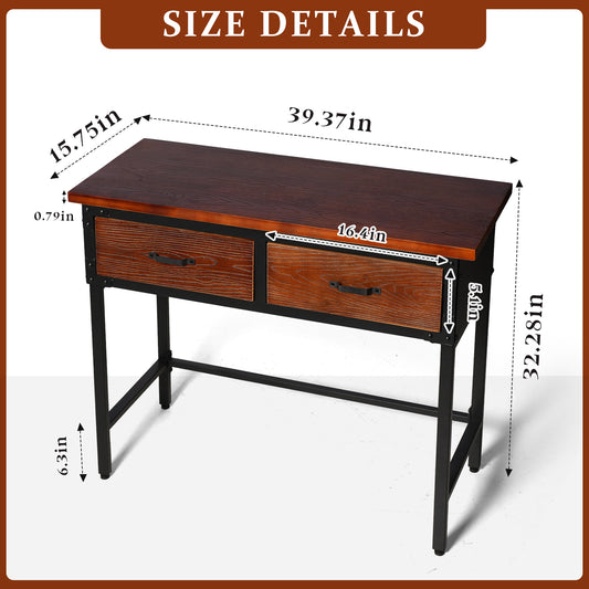 Entryway Table, 39.37'' Console Sofa Table with 2 Drawers, Industrial Entry Way Table , for Living Room, Hallway, Entrance, Foyer, Rustic Brown