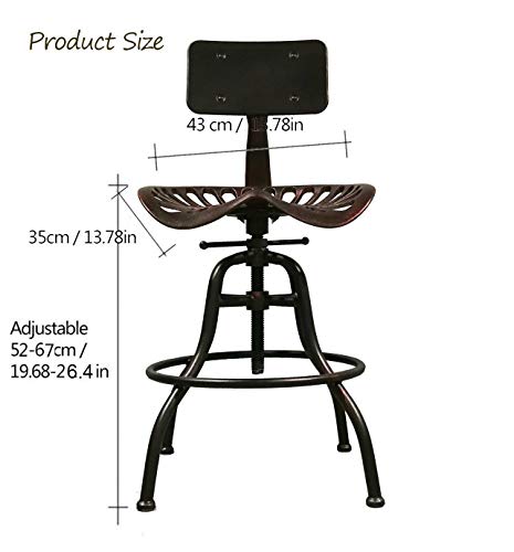 Cast Iron Tractor Seat Bar Stool with Backrest-Adjustable Swivel Industrial Metal Design Vintage Bar Stool-Kitchen Counter Height-19.68-26 Inch(Copper)