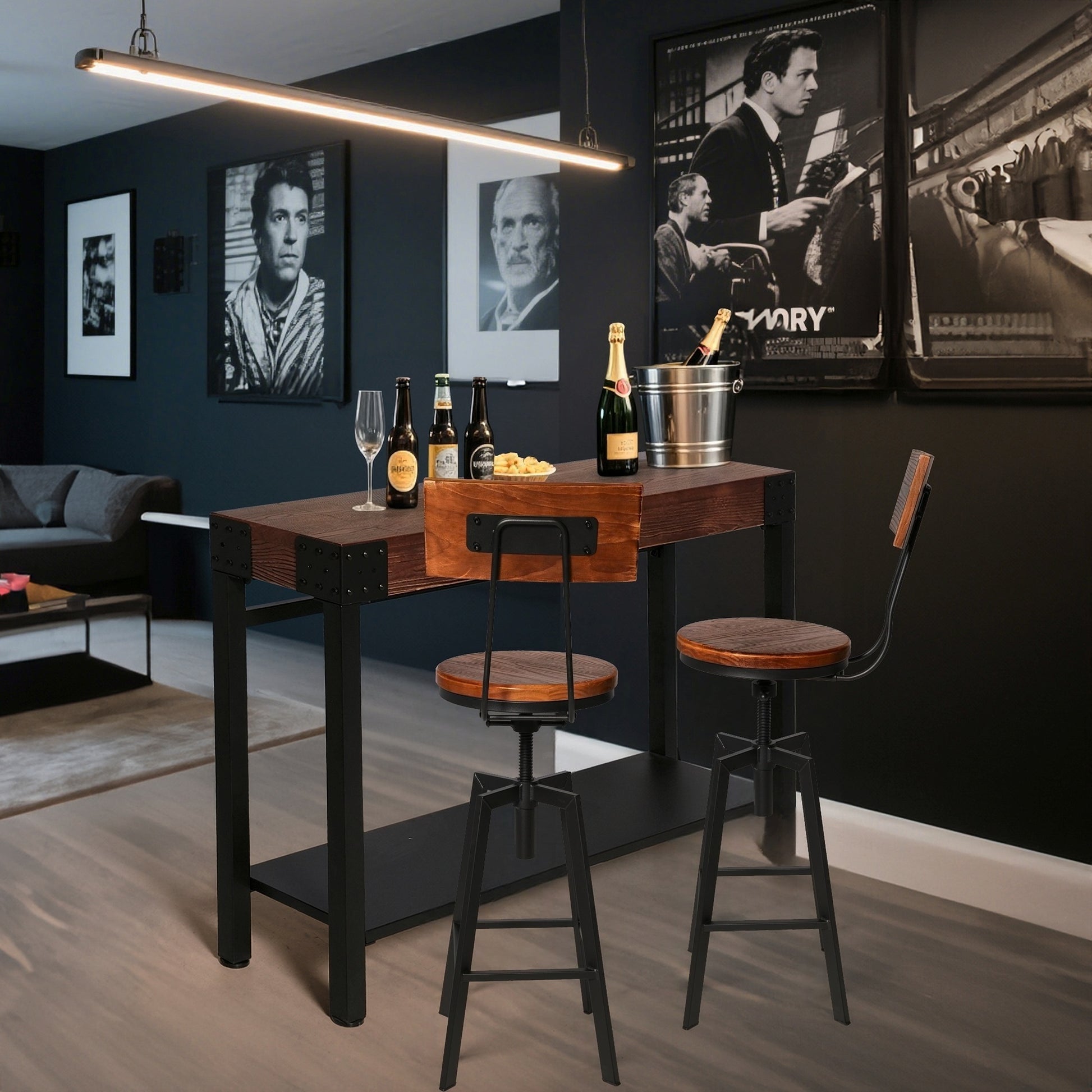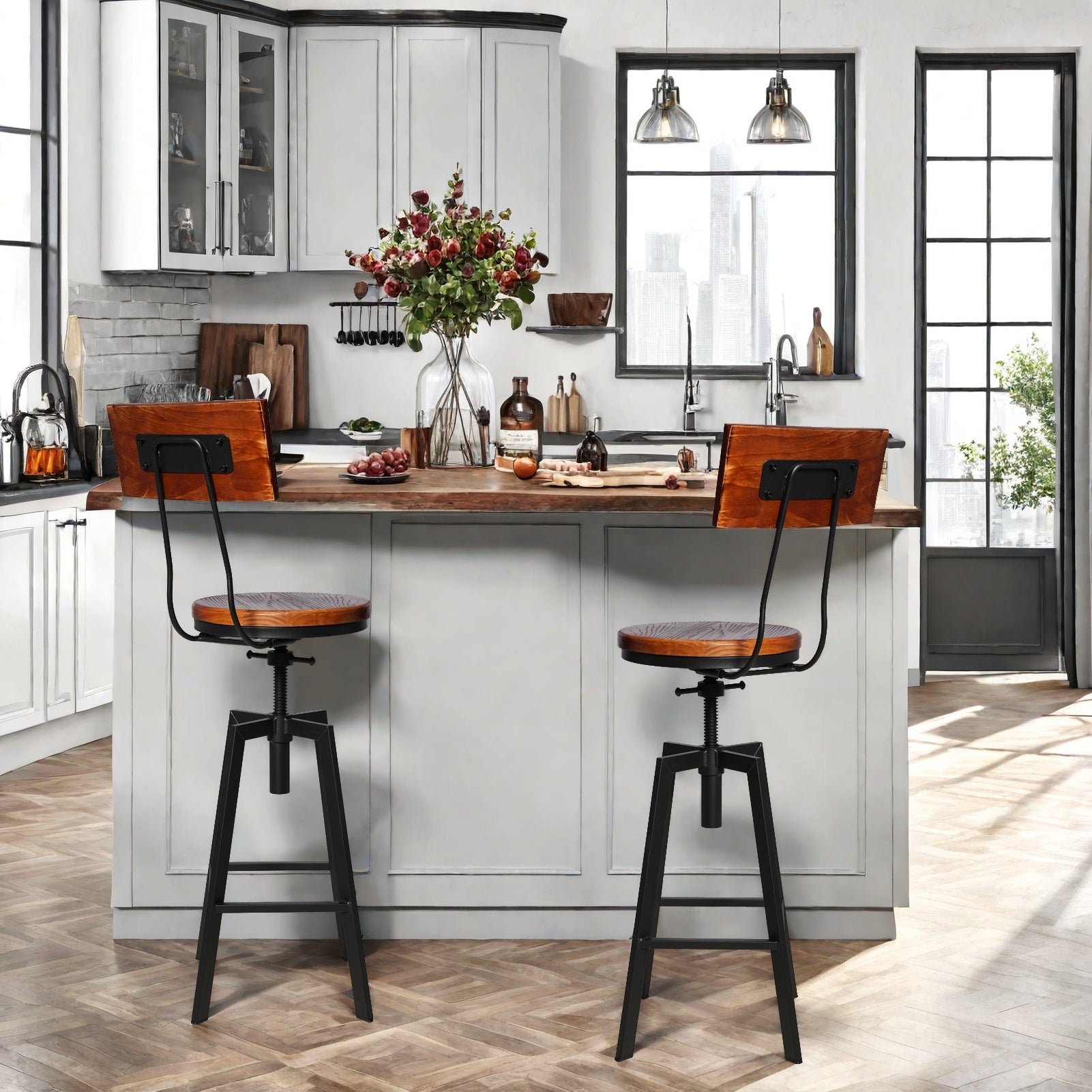 SET OF 2,24.8"-28.74" Tall Adjustable Swivel Stools with Backrest Industrial Farmhouse Bar Stools Home Kitchen Dining Breakfast Chair,Brown Seat Top