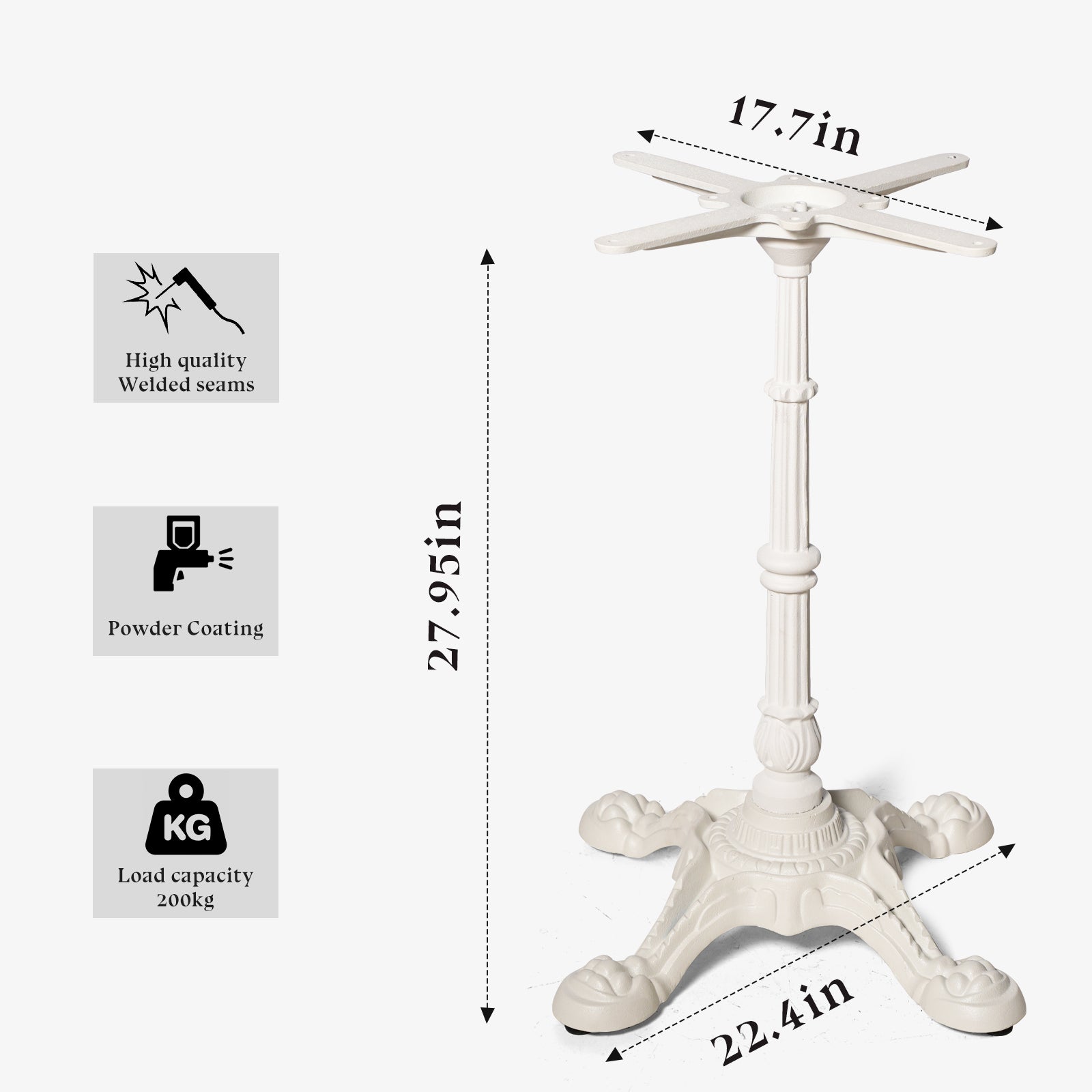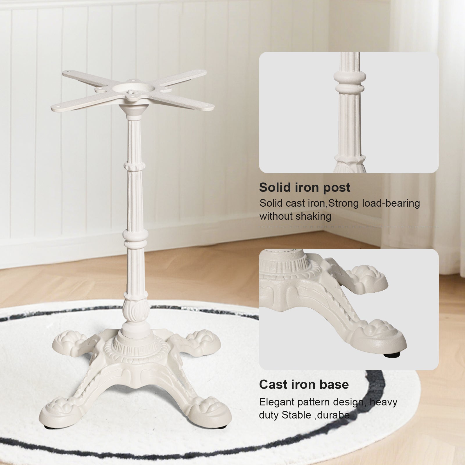 【STURDY CONSTRUCTION】This 27.95-inch cast iron table base with cast iron cross tray is sturdy and hard to deform, with strong load bearing capacity.