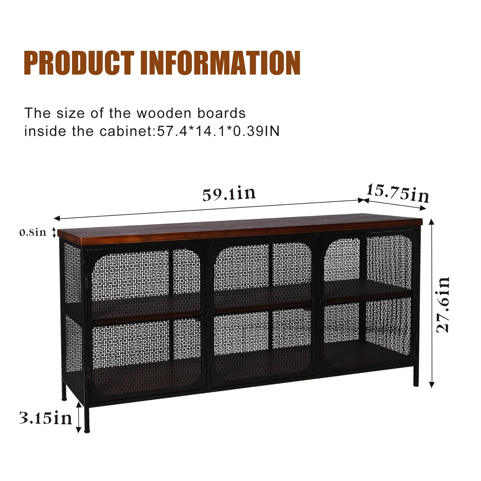 Capacious: Make the most out of your space with our designed storage cabinet. With dimensions of H27.6"x L59.1"x D15.75", it offers ample storage capacity without taking up excessive floor space.