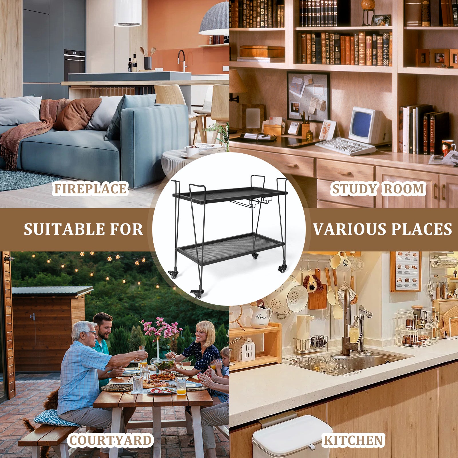 [Easy to Move]: With four metal wheels and 4 side handles , the kitchen island cart can be freely moved in your kitchen or dining room. Allows you to move the serving cart when you need to serve your guests, because the wheels make it easier without the hassle of lifting to move.