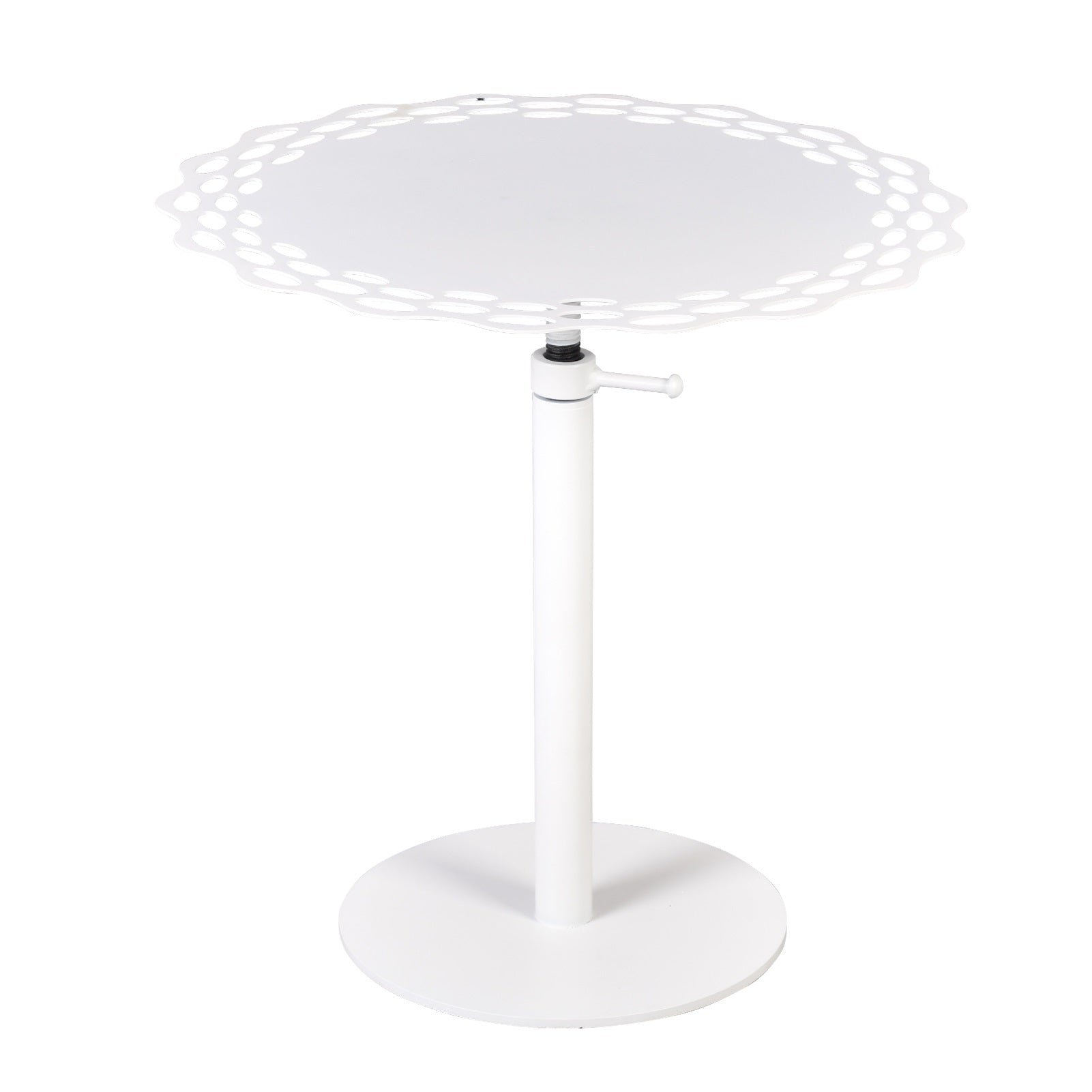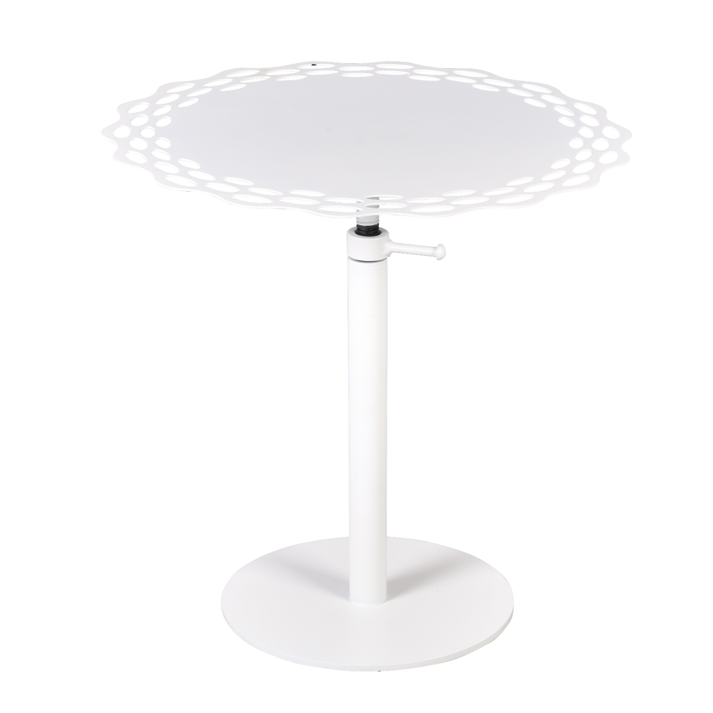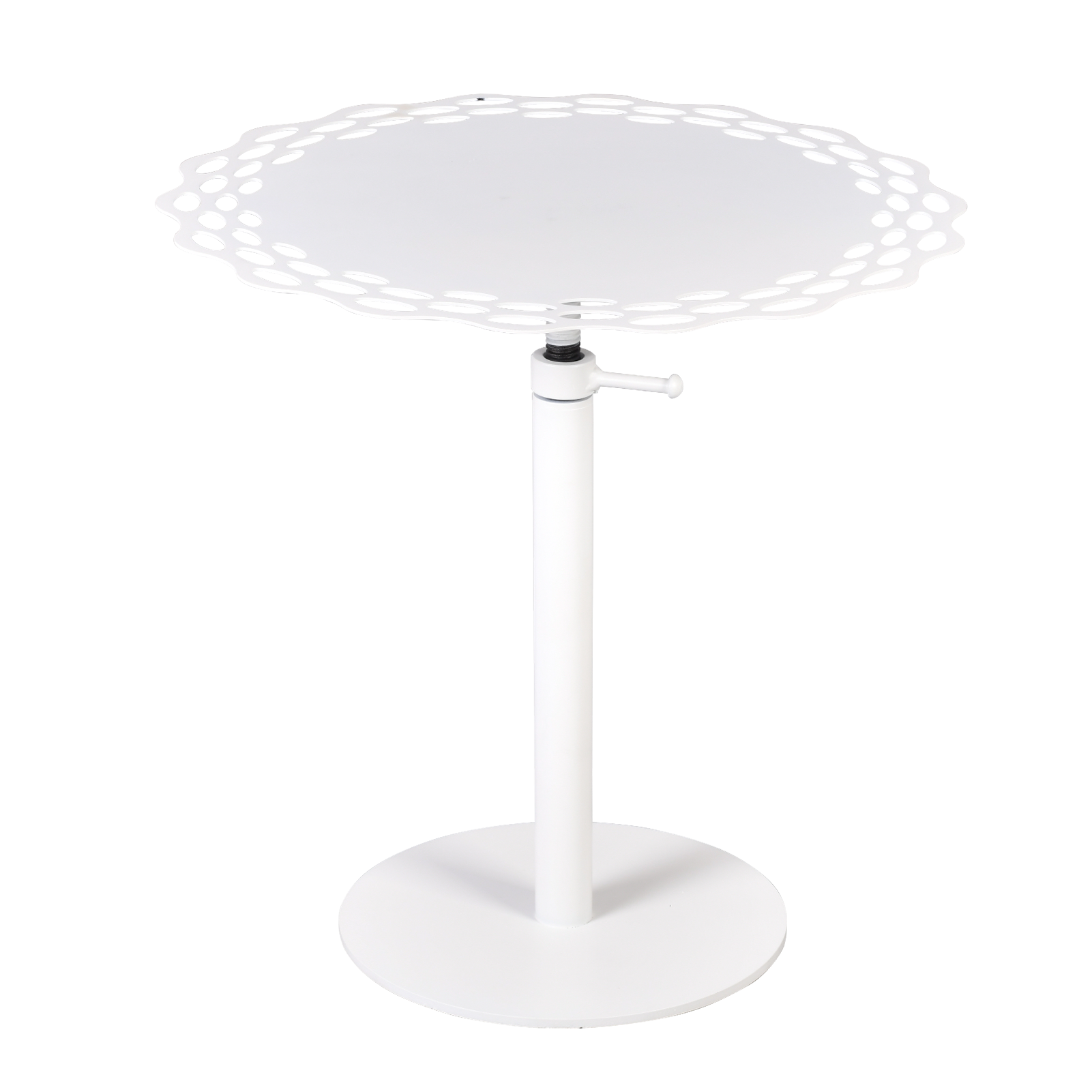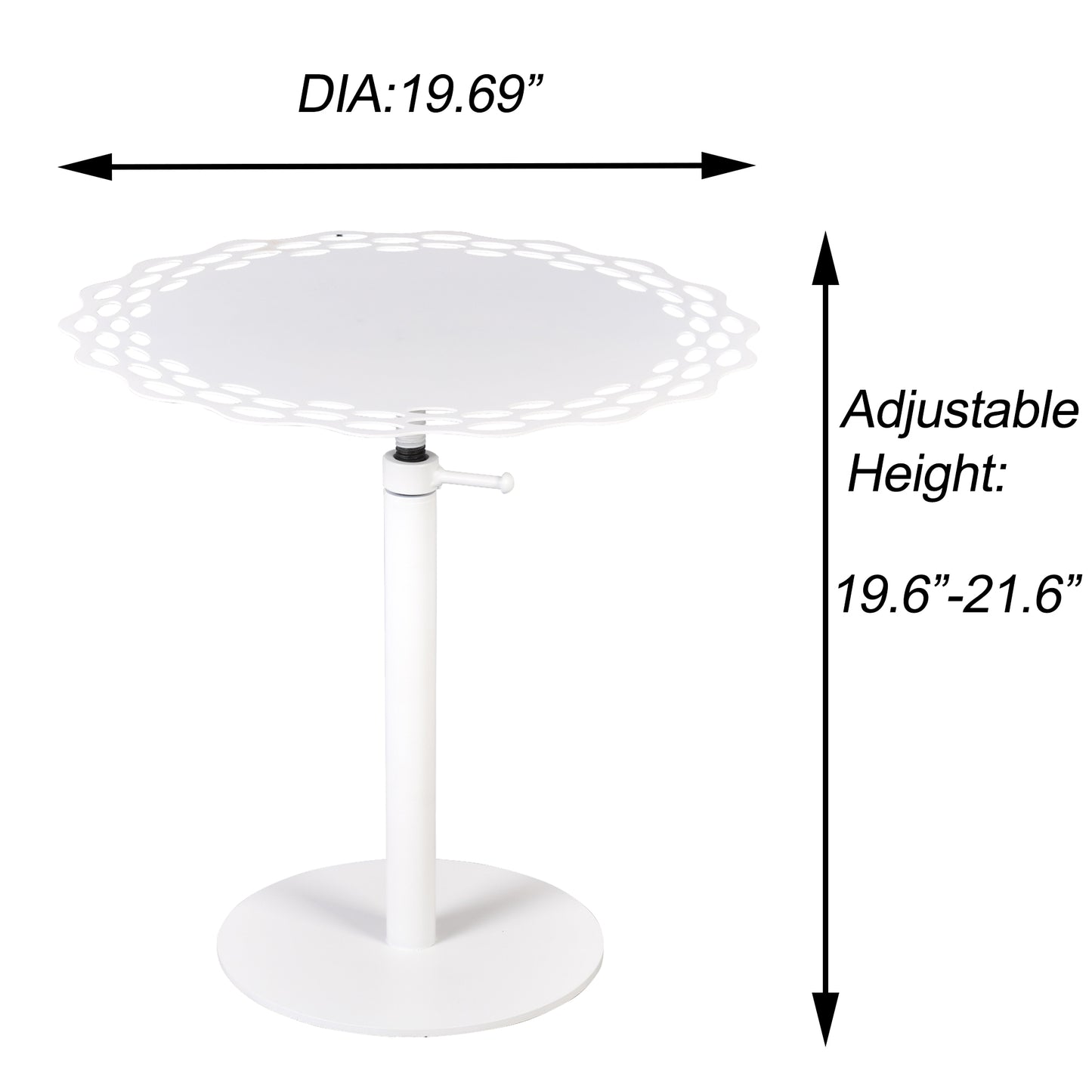 Outdoor Side Table,Tray Metal Sofa End Table,Waterproof and Anti-Rust Outdoor&Indoor Snack Table, White (Lace Designed Top)