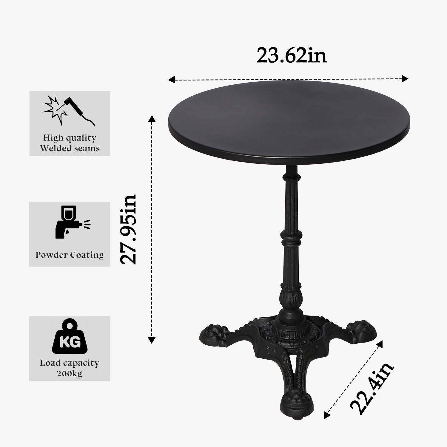 〖Sturdy and Durable Construction〗This table is supported by a solid iron post and a cast iron base to guarantee the sturdy frame and durable use. Along with Design of cast iron base, the bar table is added with an extra stability to firmly stand on the floor with 200 lbs weight capacity.