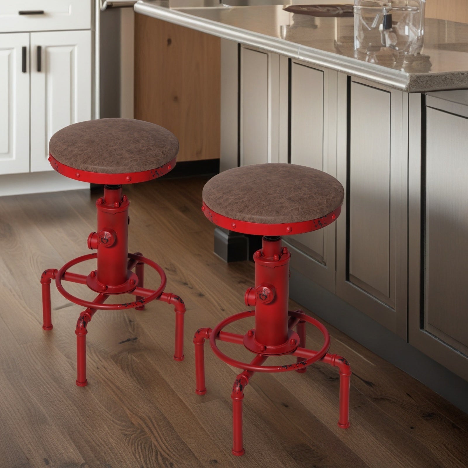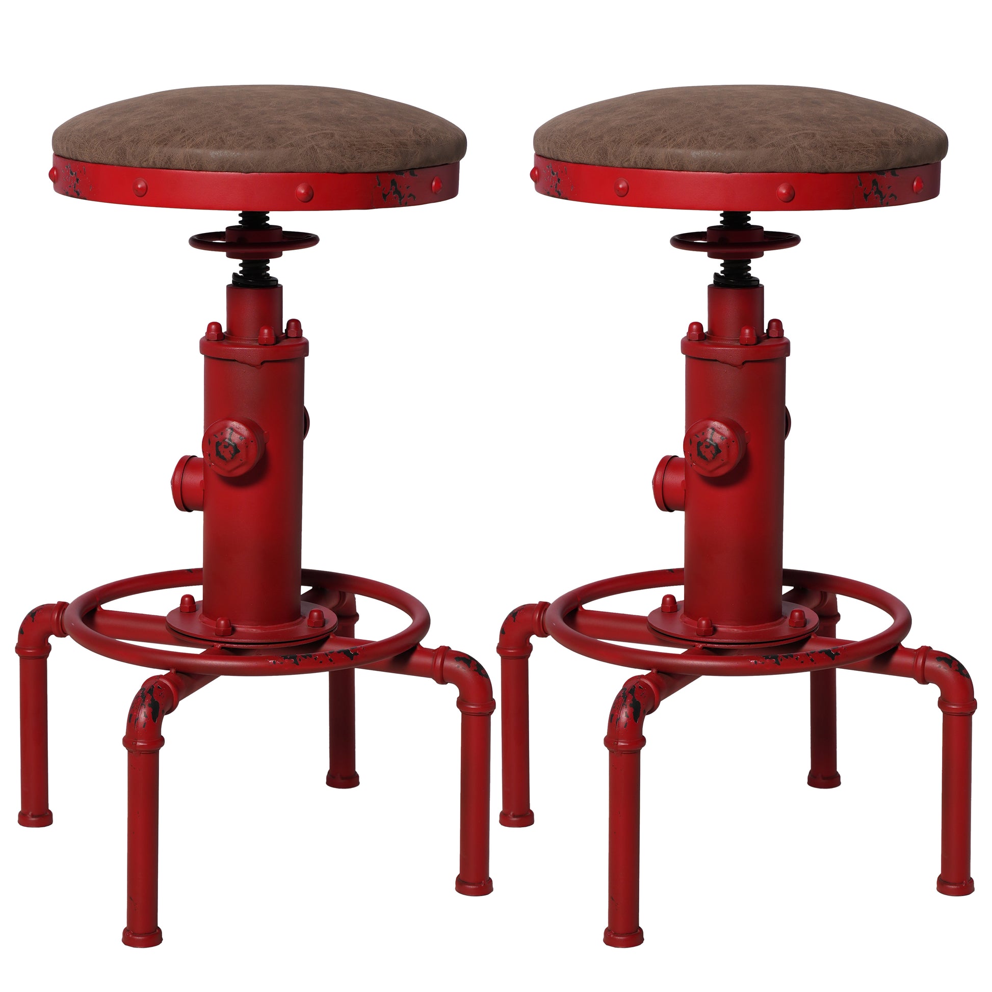 Set of 2,Antique Vintage Industrial Bar Stool PU Leather Water Pipe Fire Hydrant Design Cafe Coffee Industrial Bar Stool