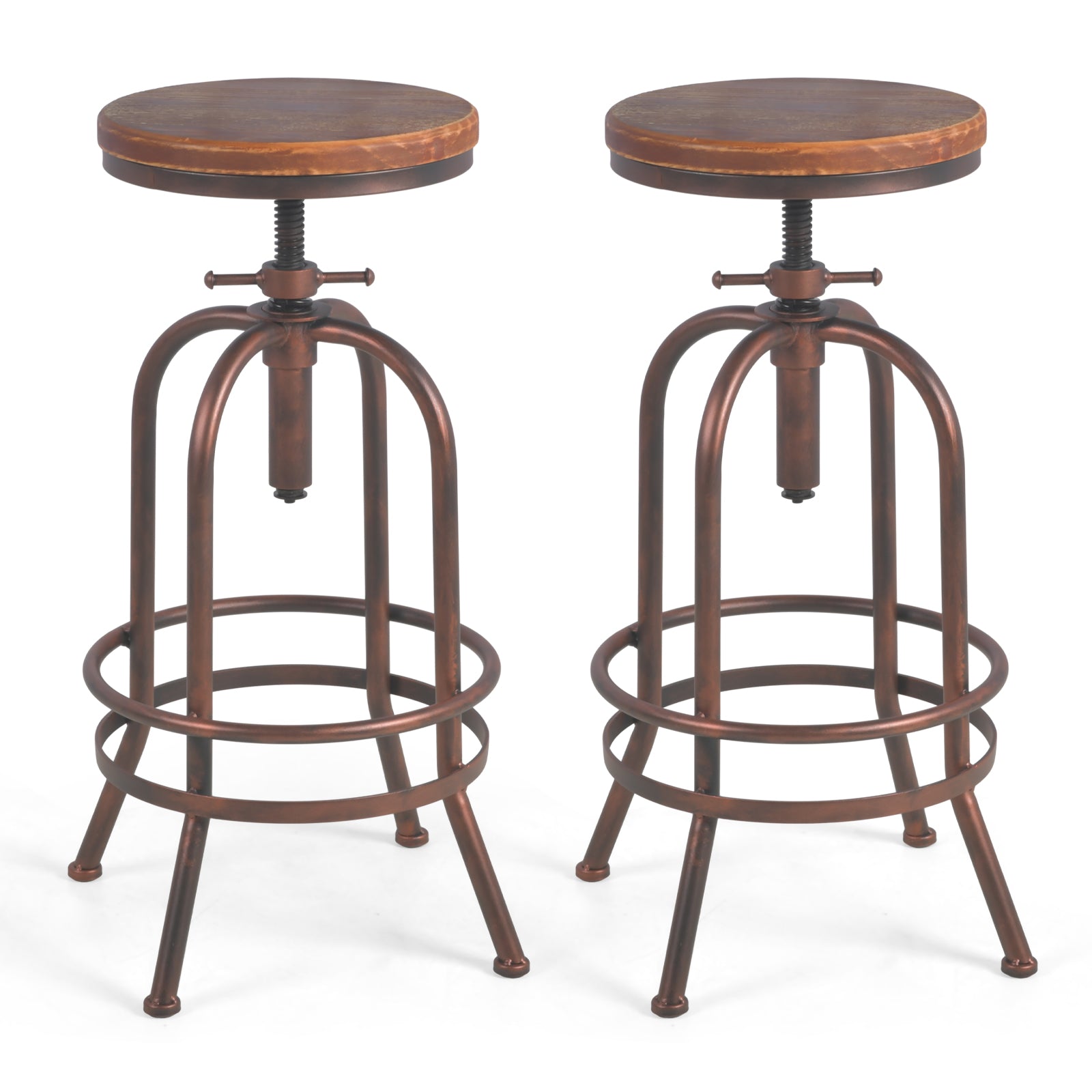 Set of 2, Industrial Bar Stool-Retro 26-32.3inch Swivel Stools-Extra Tall Kitchen Chair-Bar Counter Height Adjustable-Fully Welded (COPPER)