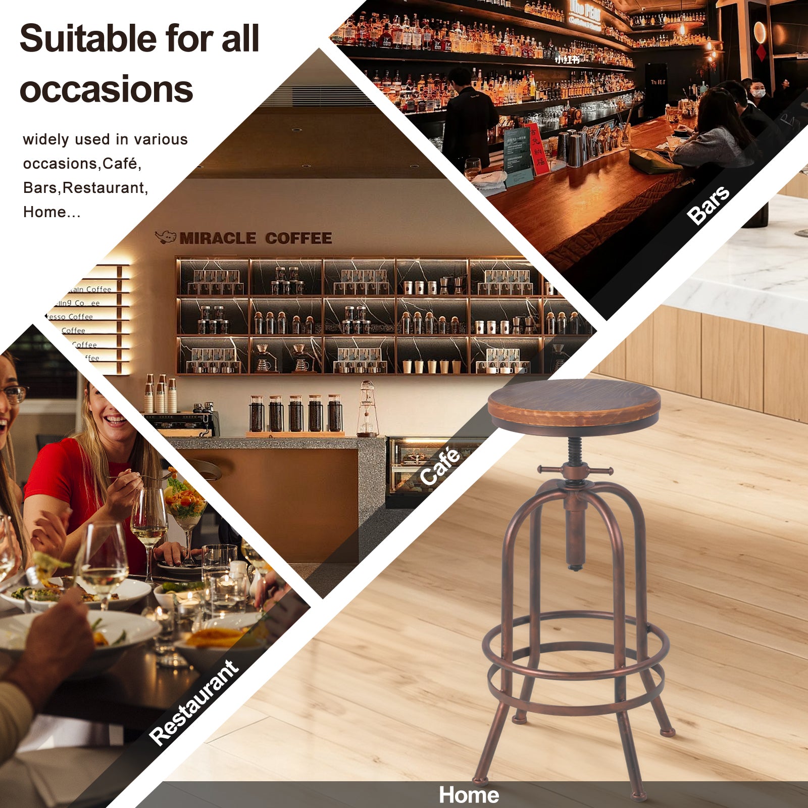 26-32.3 inch Pub Height Stool,Height adjustable from counter height to bar height.Extra tall to meet your needs,perfect stool for family gathering party or any occasion.