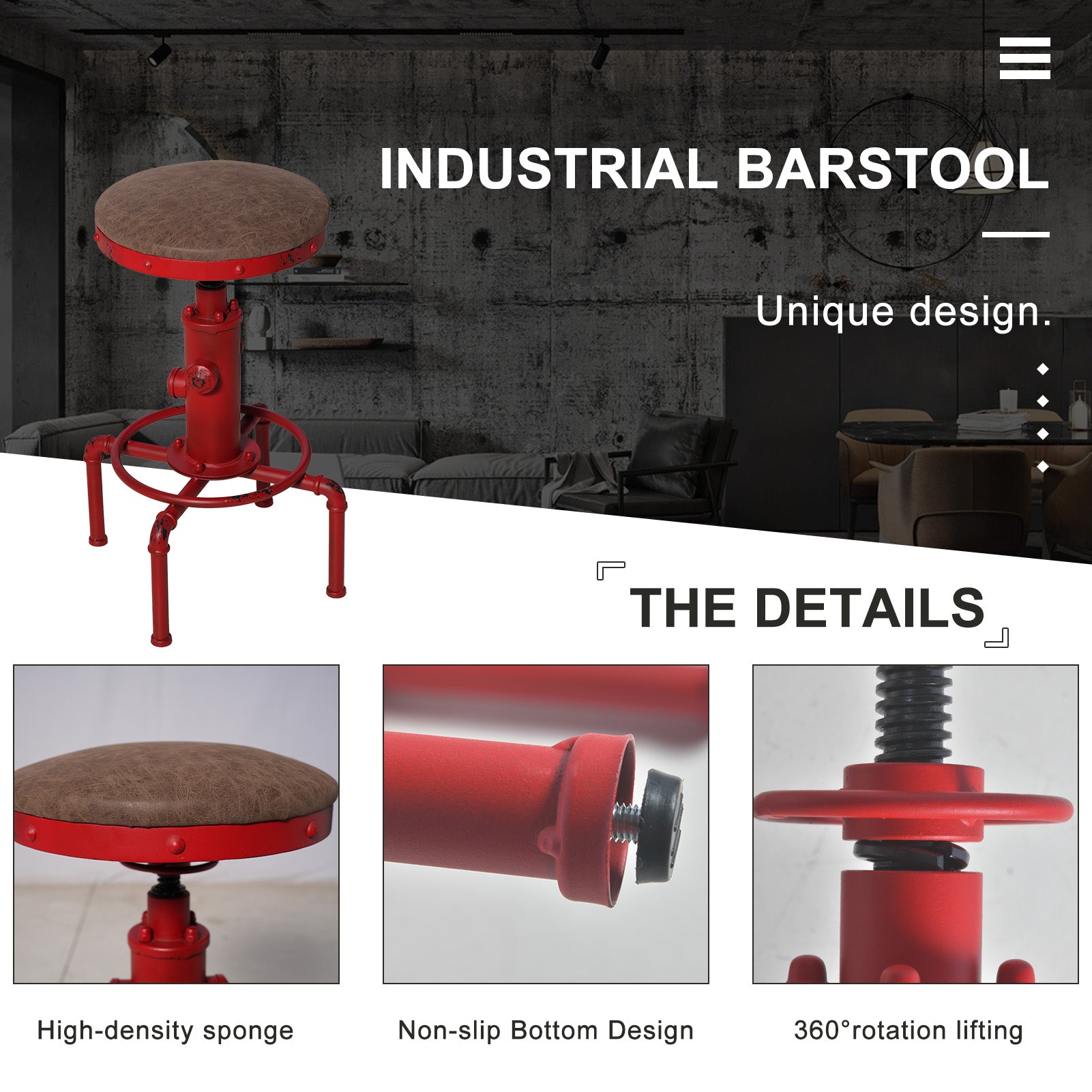 【Stylish Design】The hydrant aged red bar stool is certainly something to get fired up about. Fusing unique vintage style with modern practicalities, it has plenty of originality. Perfect to use as dining breakfast/kitchen chair or extra seating for guests. Decorate with the hydrant bar set and bring a repurposed industrial look to your bar area.