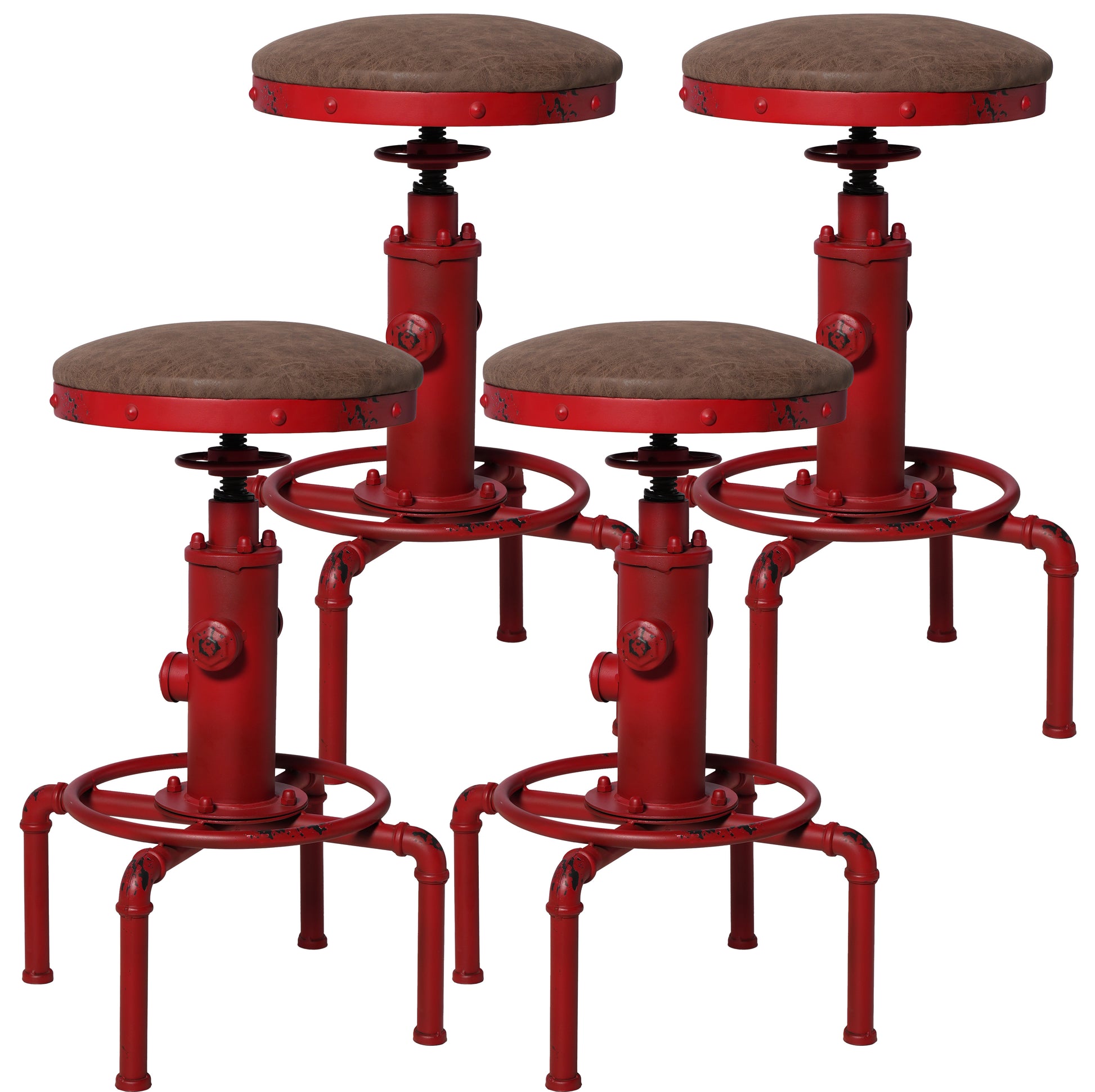 Set of 4,Antique Vintage Industrial Bar Stool PU Leather Water Pipe Fire Hydrant Design Cafe Coffee Industrial Bar Stool