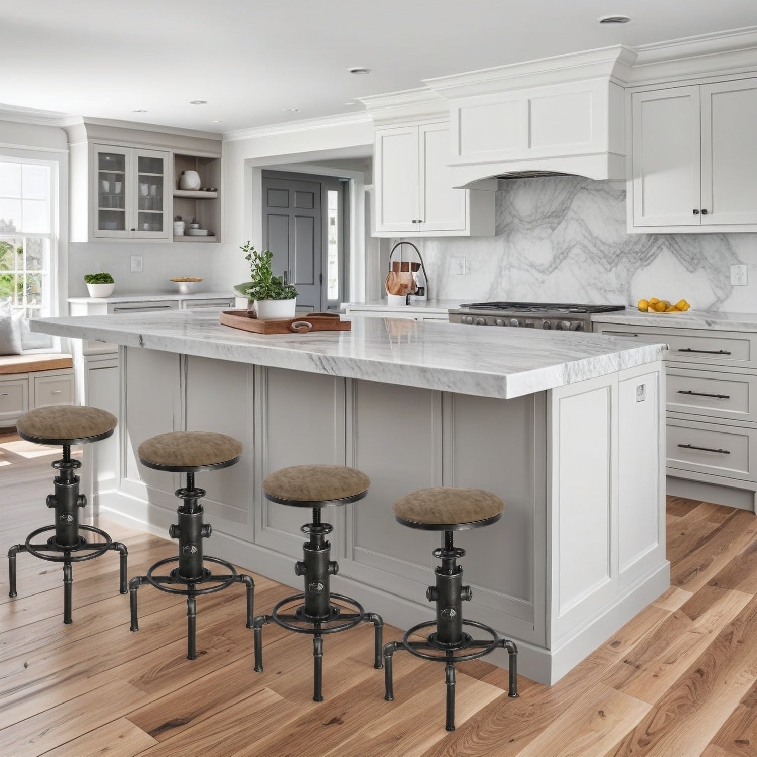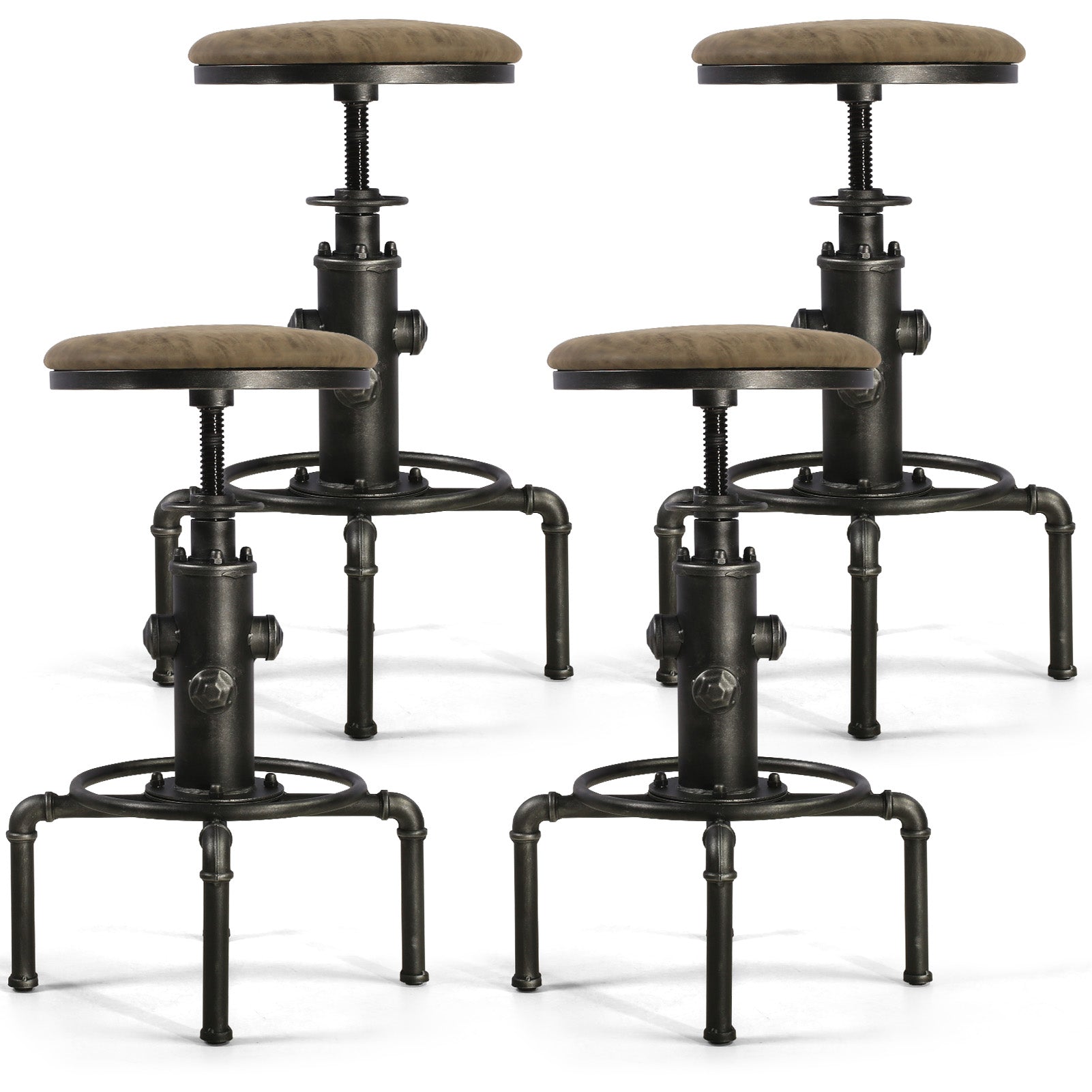 Set of 4,Antique Vintage Industrial Bar Stool PU Leather Water Pipe Fire Hydrant Design Cafe Coffee Industrial Bar Stool