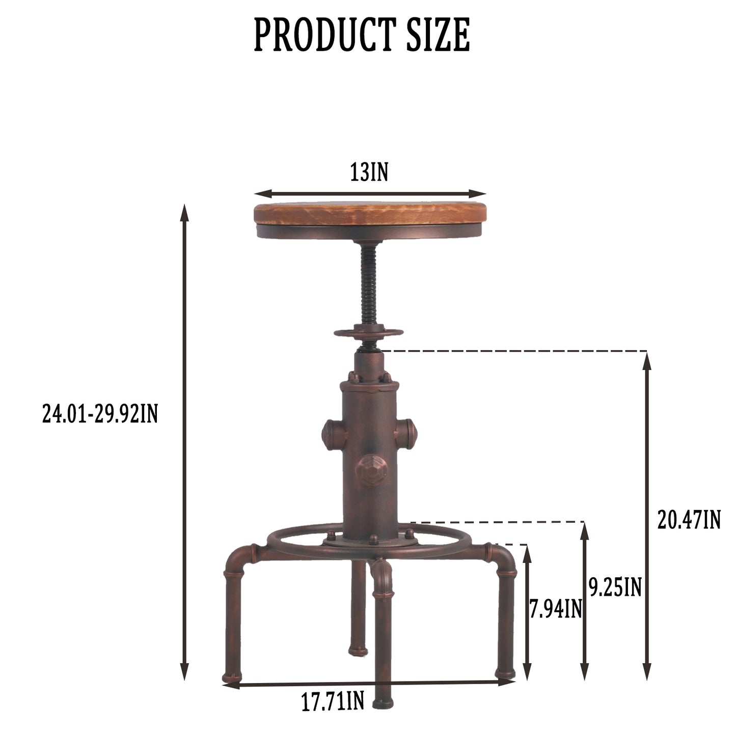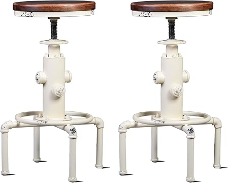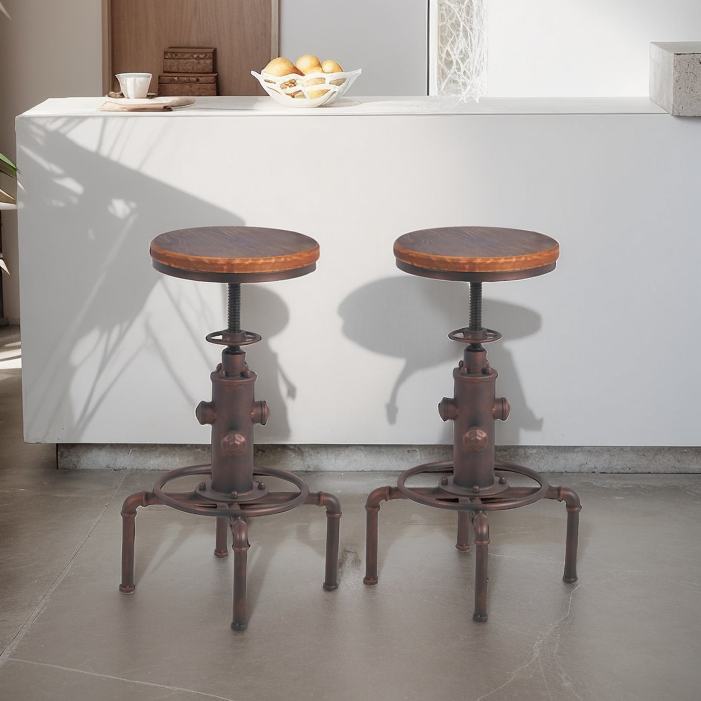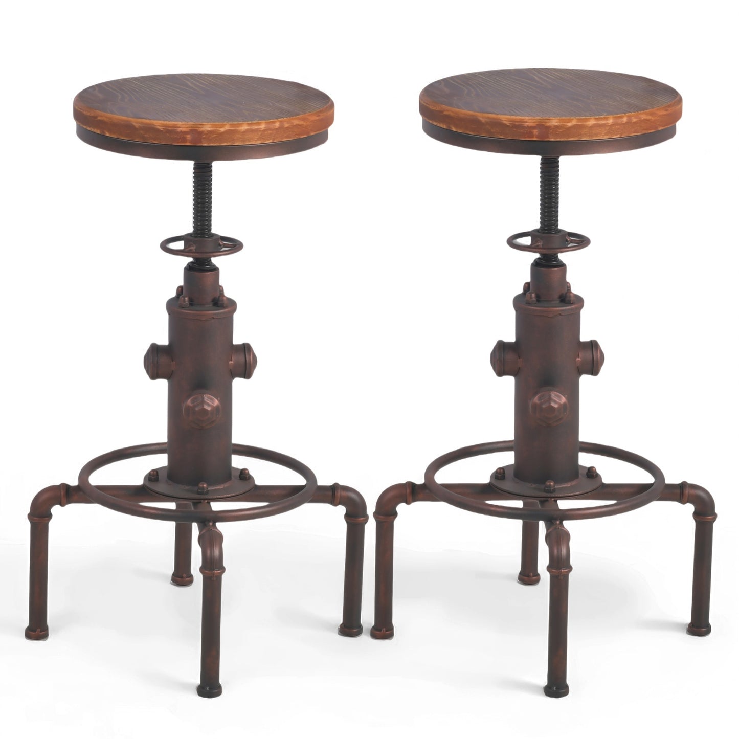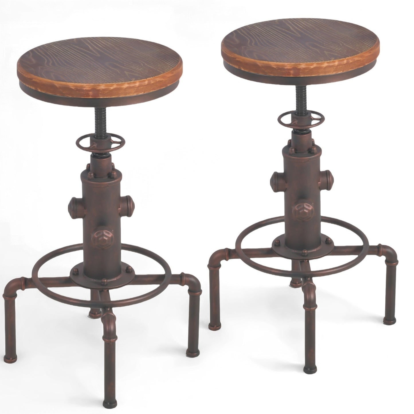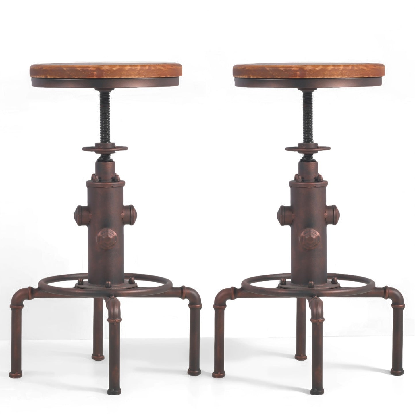 American Antique Vintage Industrial Barstool Solid Wood Water Pipe Fire Hydrant Design Cafe Coffee Industrial Bar Stool Set of 2