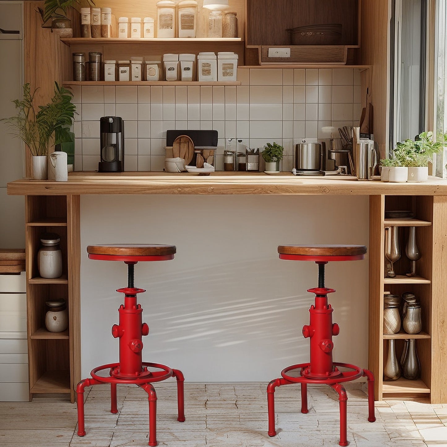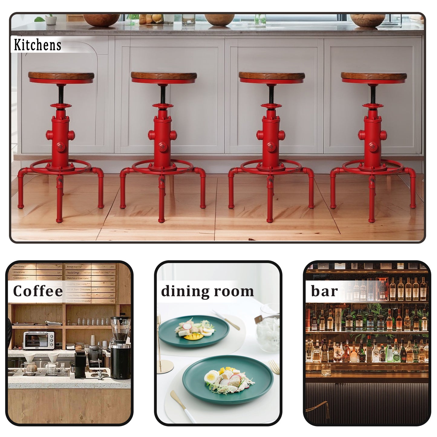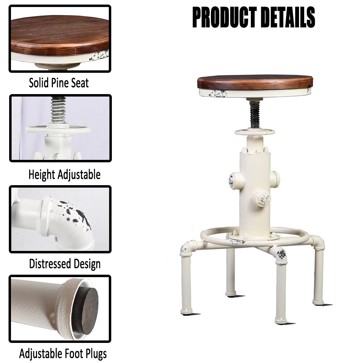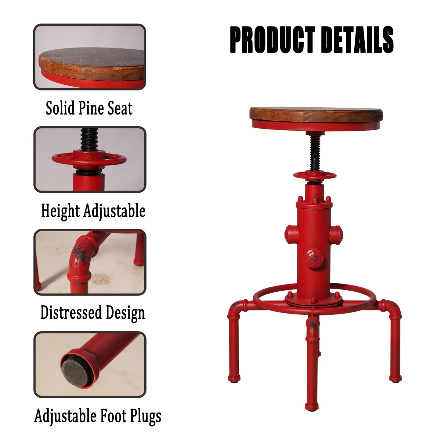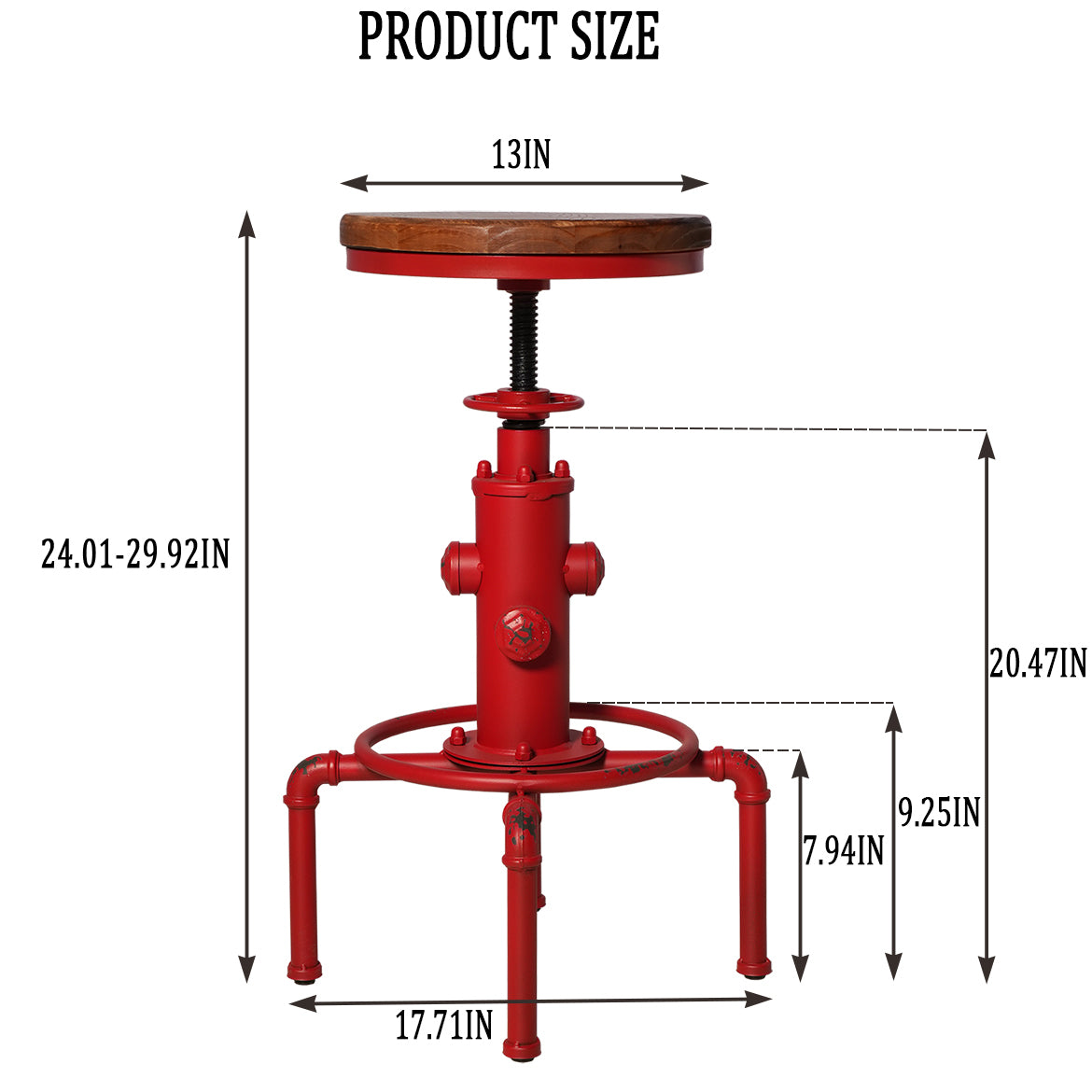 American Antique Vintage Industrial Barstool Solid Wood Water Pipe Fire Hydrant Design Cafe Coffee Industrial Bar Stool Set of 2