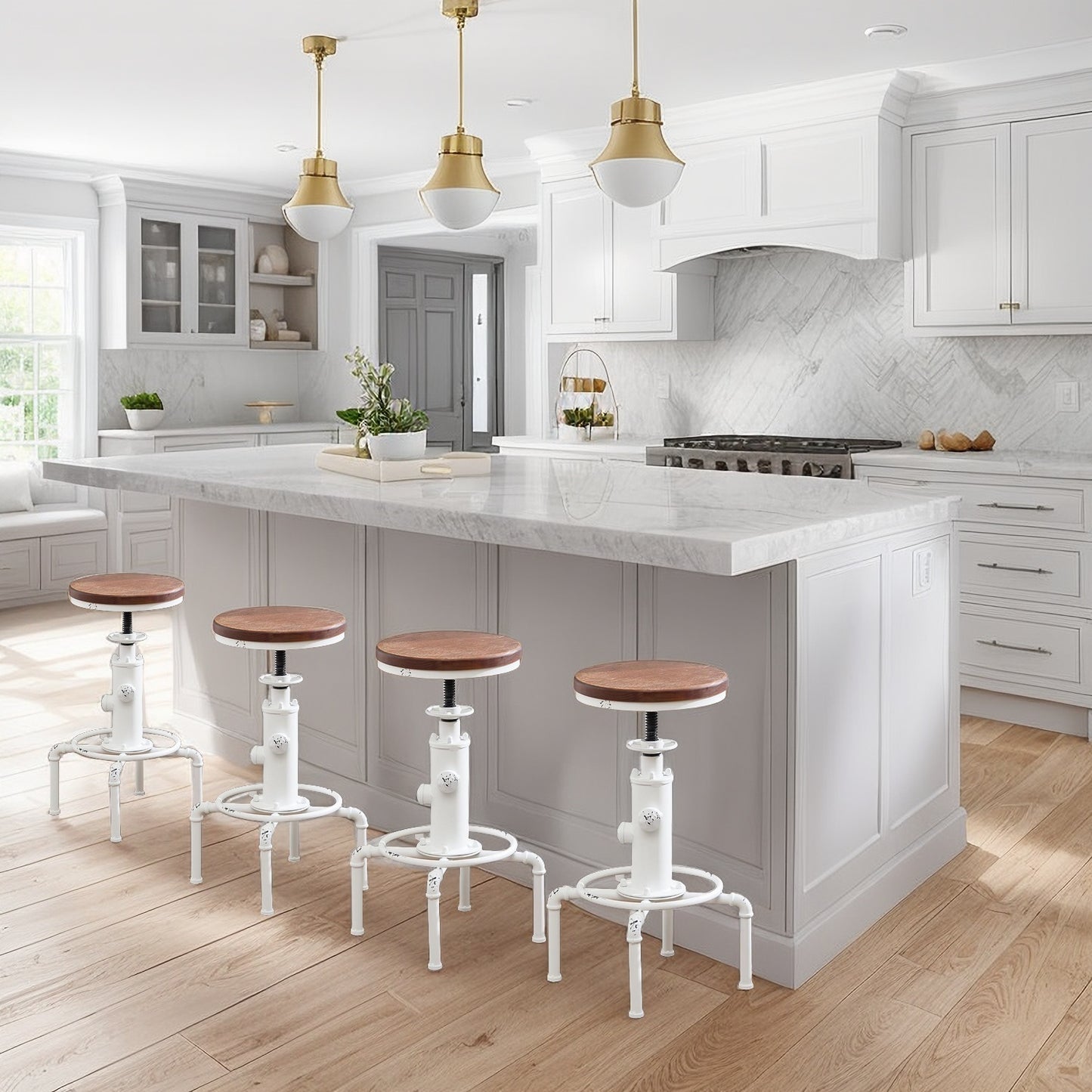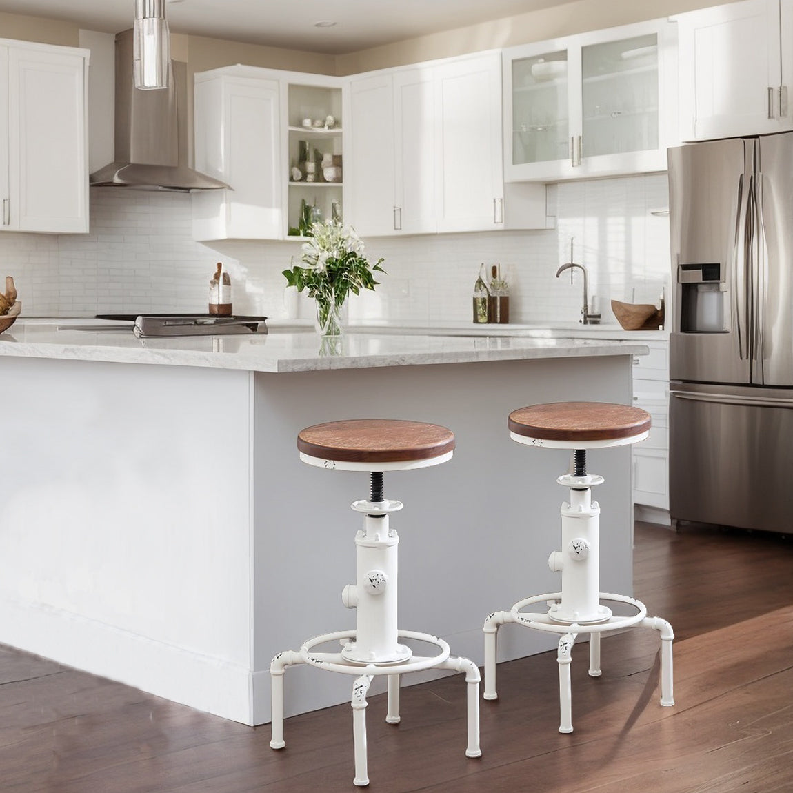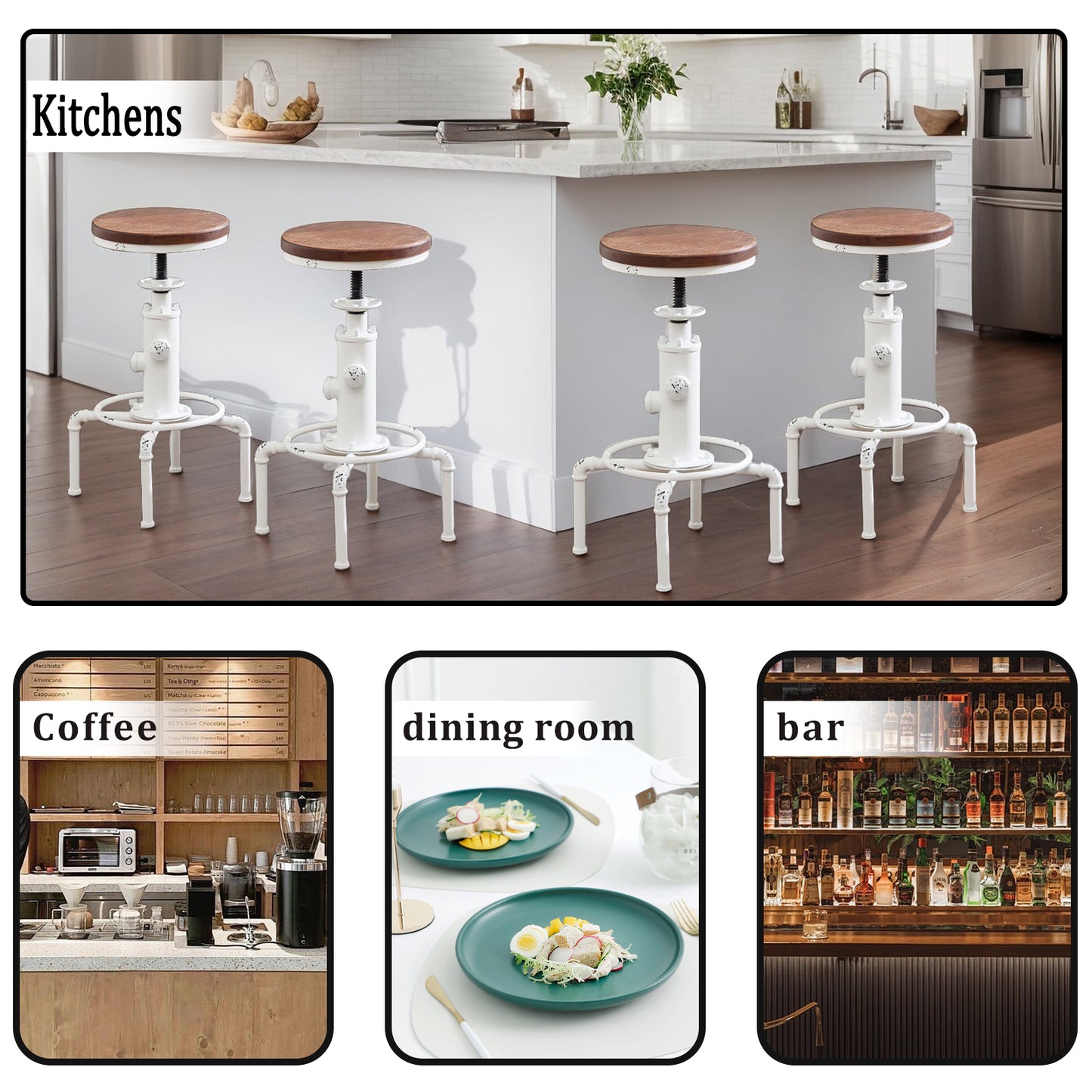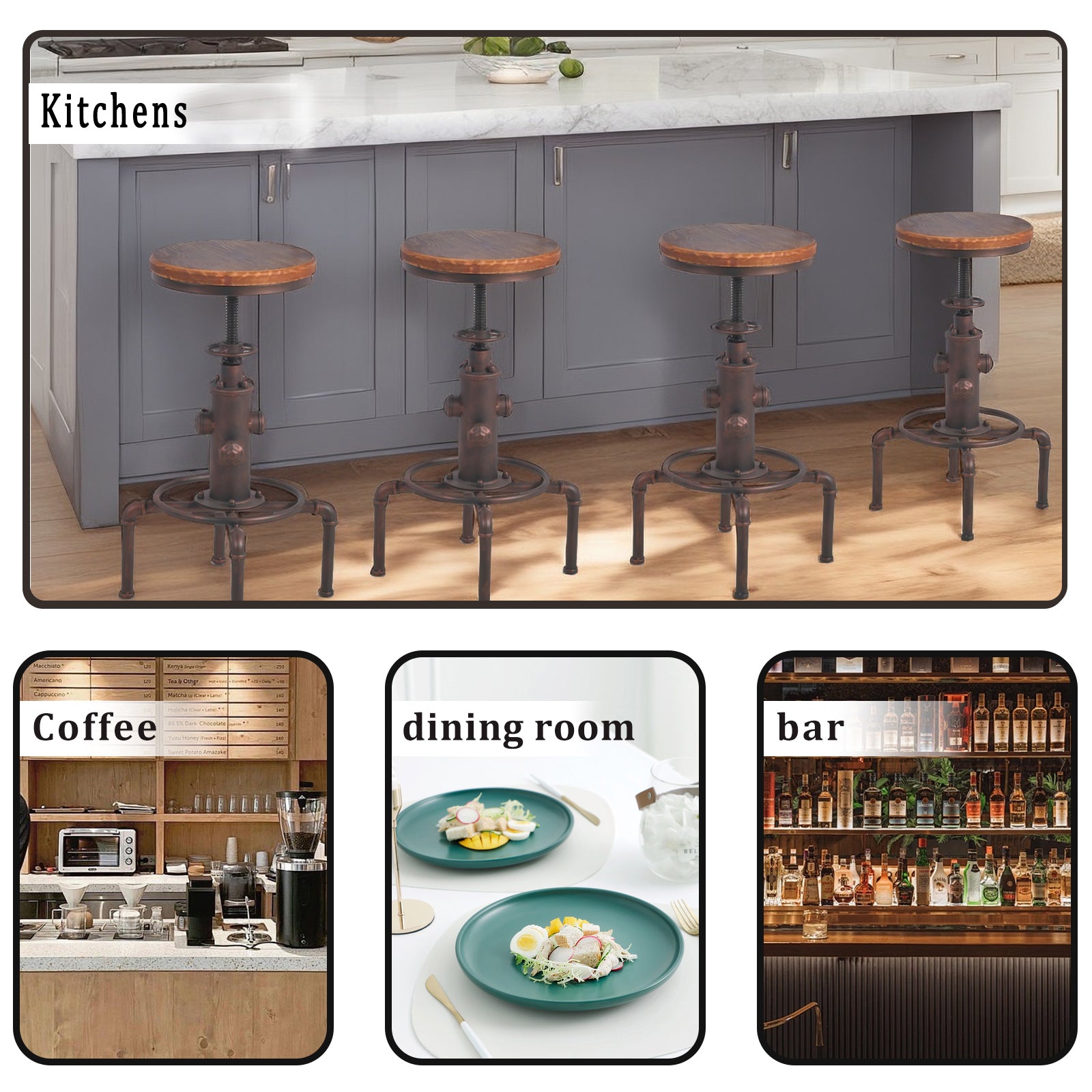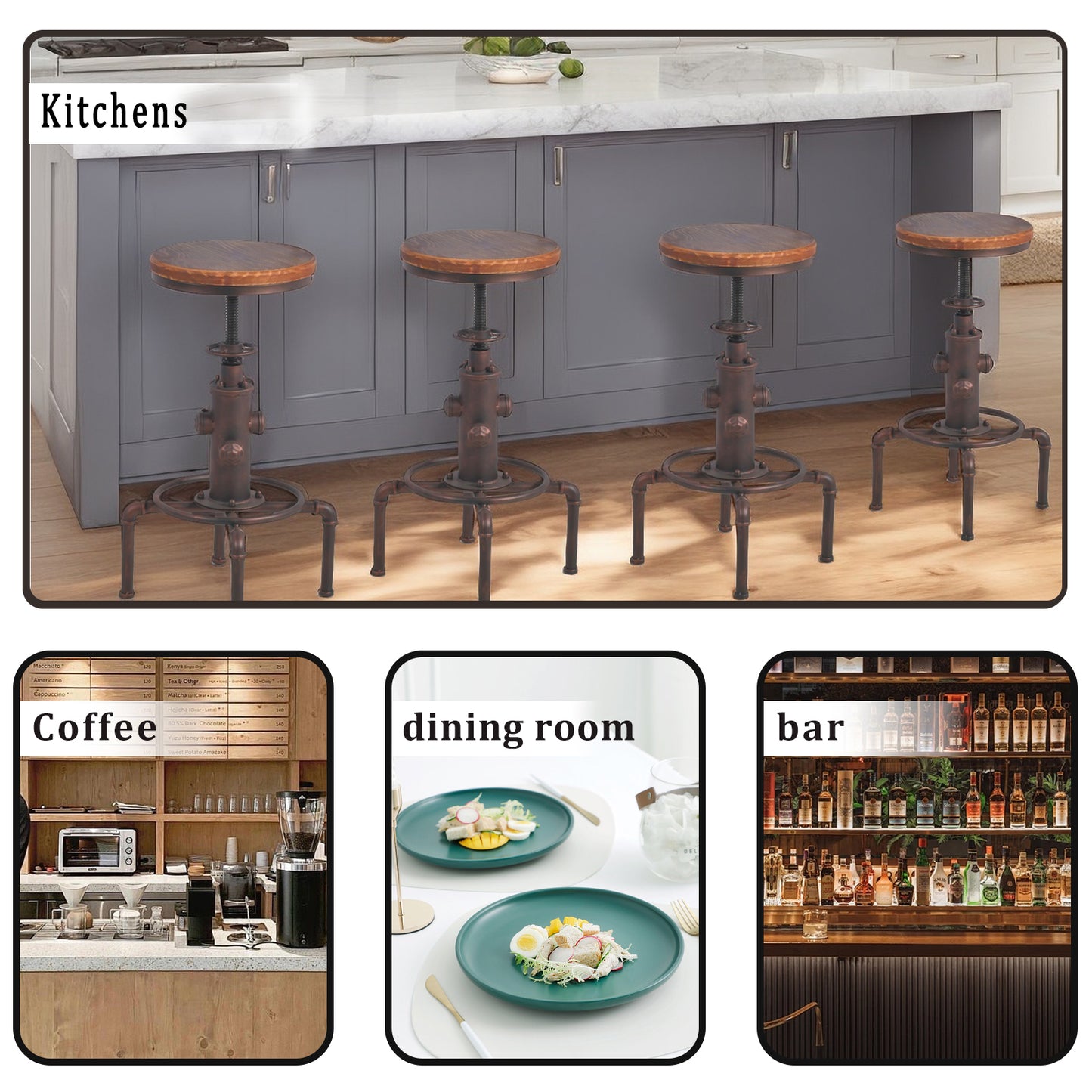 American Antique Vintage Industrial Barstool Solid Wood Water Pipe Fire Hydrant Design Cafe Coffee Industrial Bar Stool Set of 2